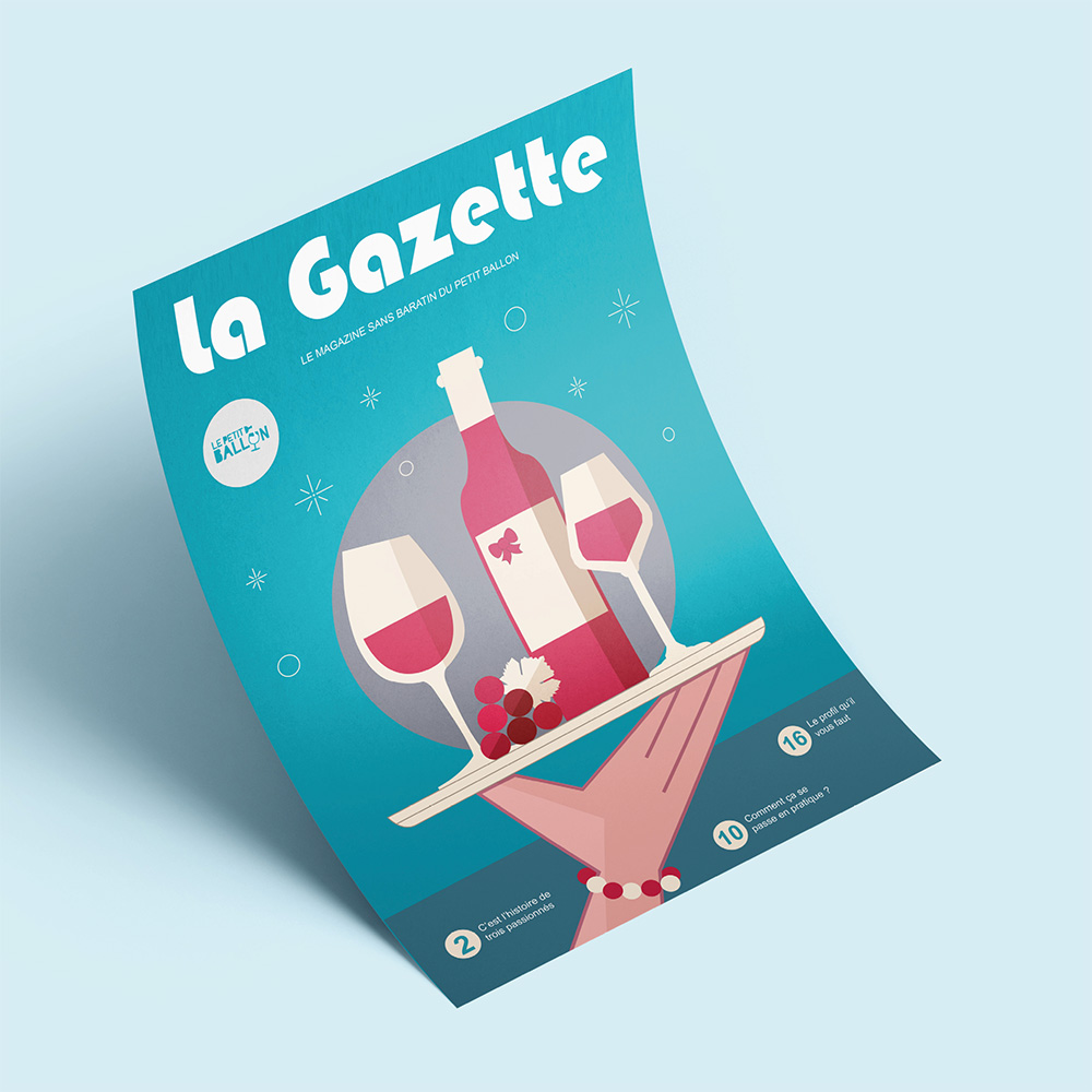 L’affiche pour La Gazette met en avant ce journal hebdomadaire créé par Le Petit Ballon. La composition, le choix des typographies et des couleurs ont été pensés pour refléter l’univers du journal et son identité visuelle